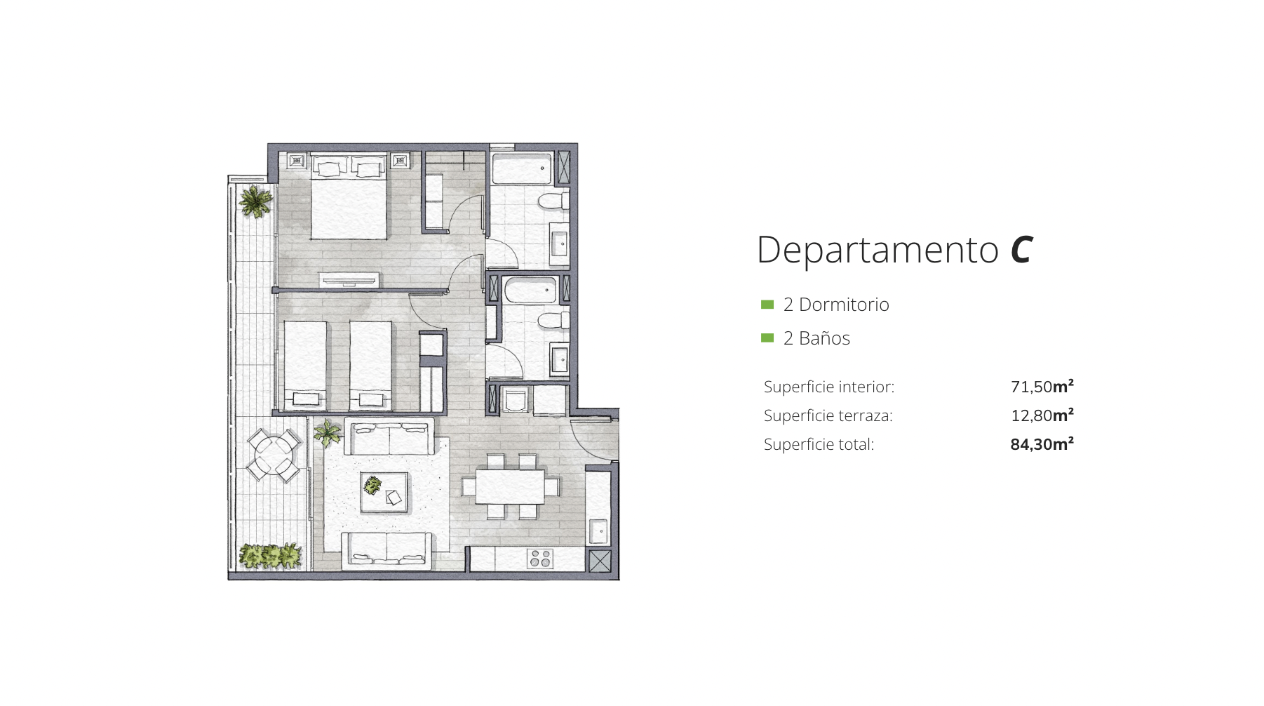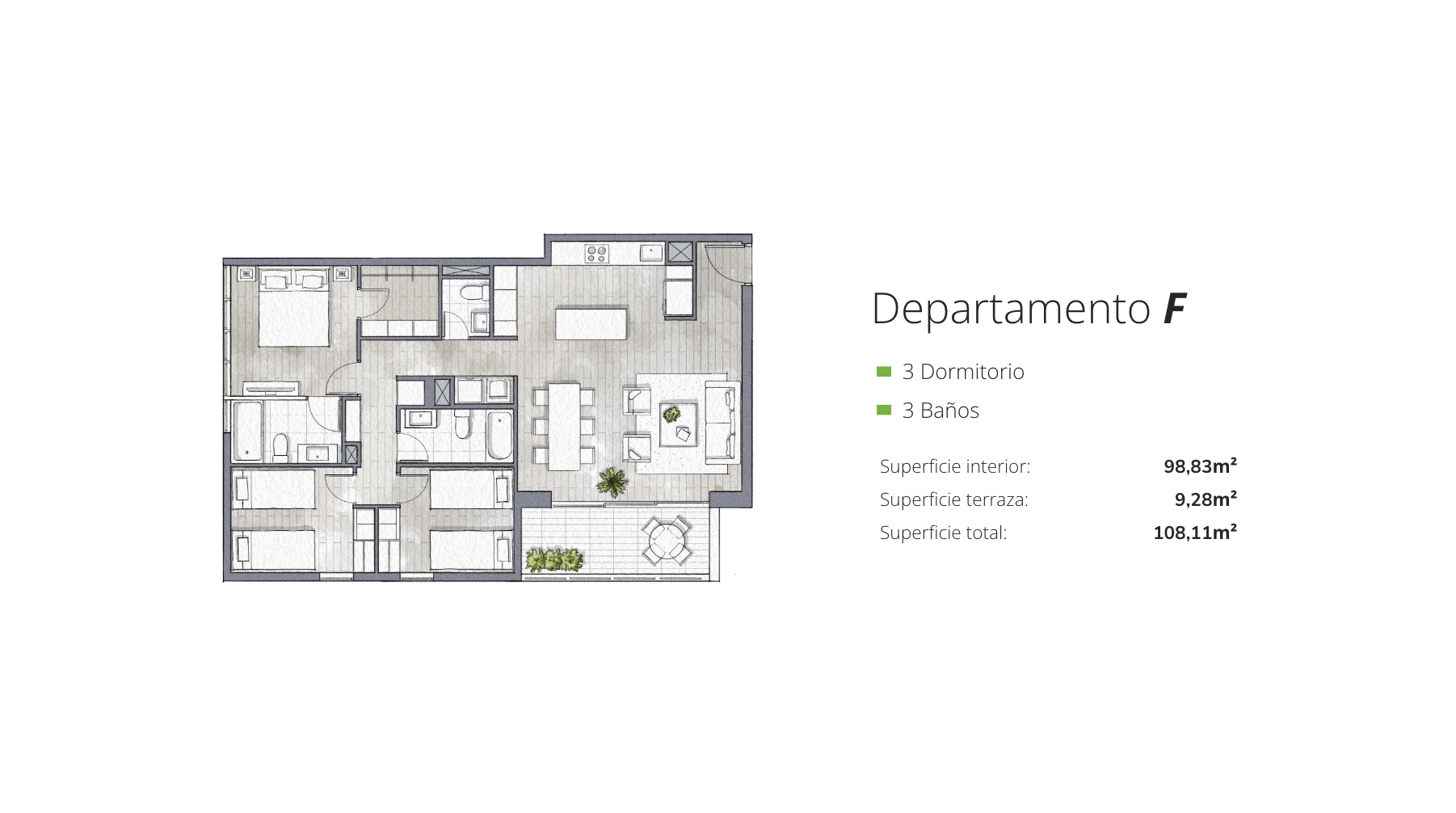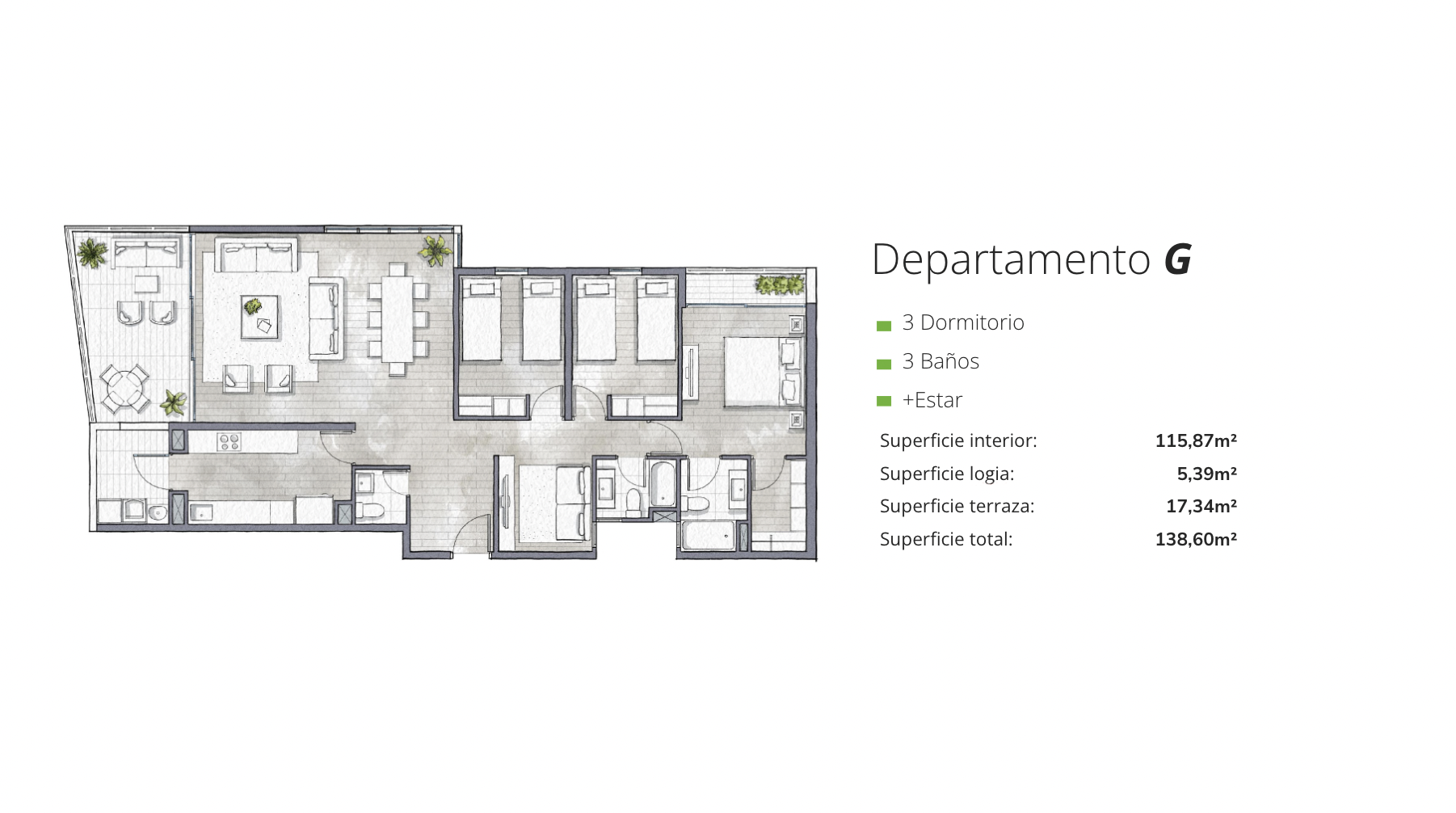 • Pisos de terrazas, baños y logias con porcelanato de primer nivel